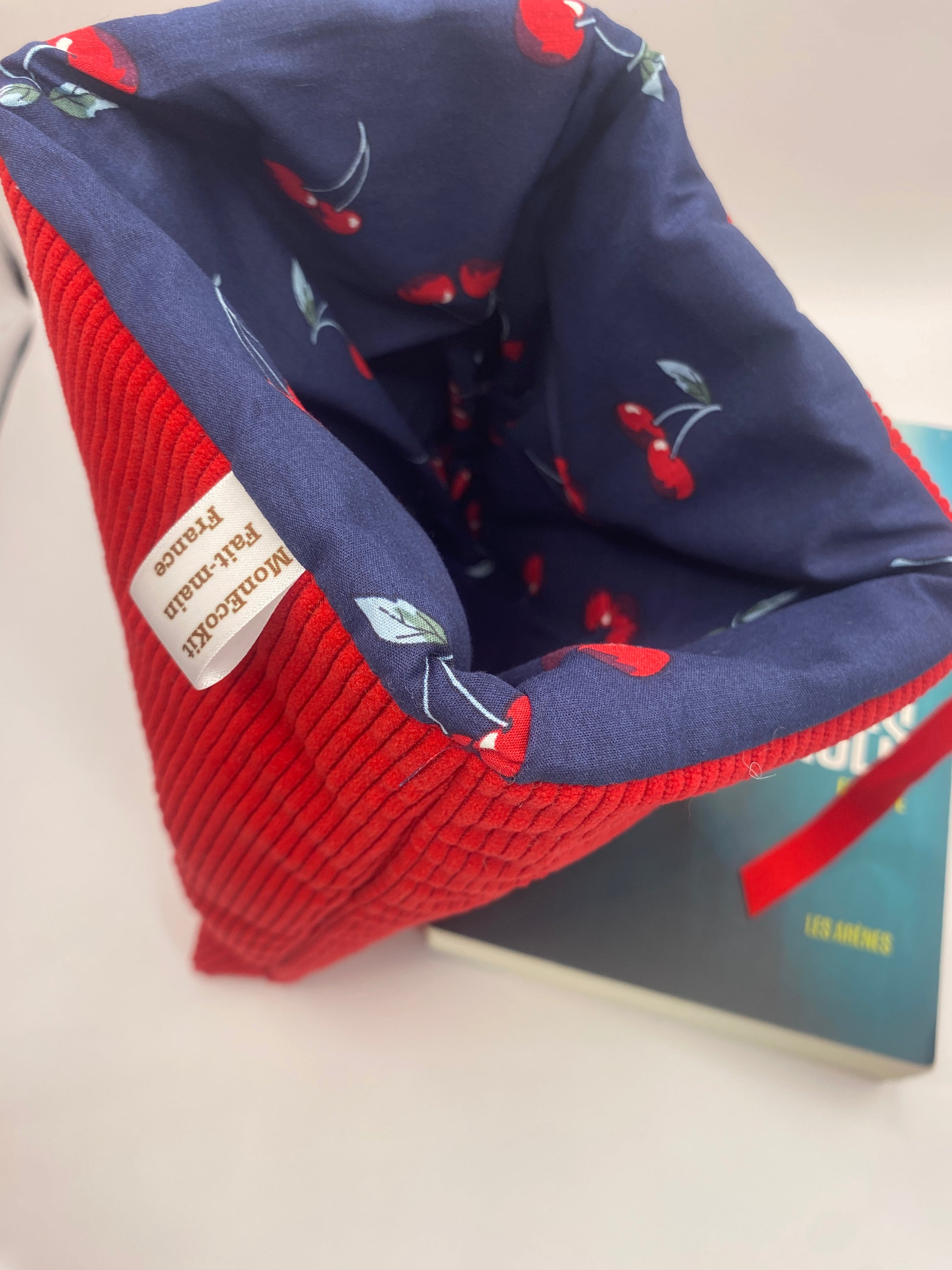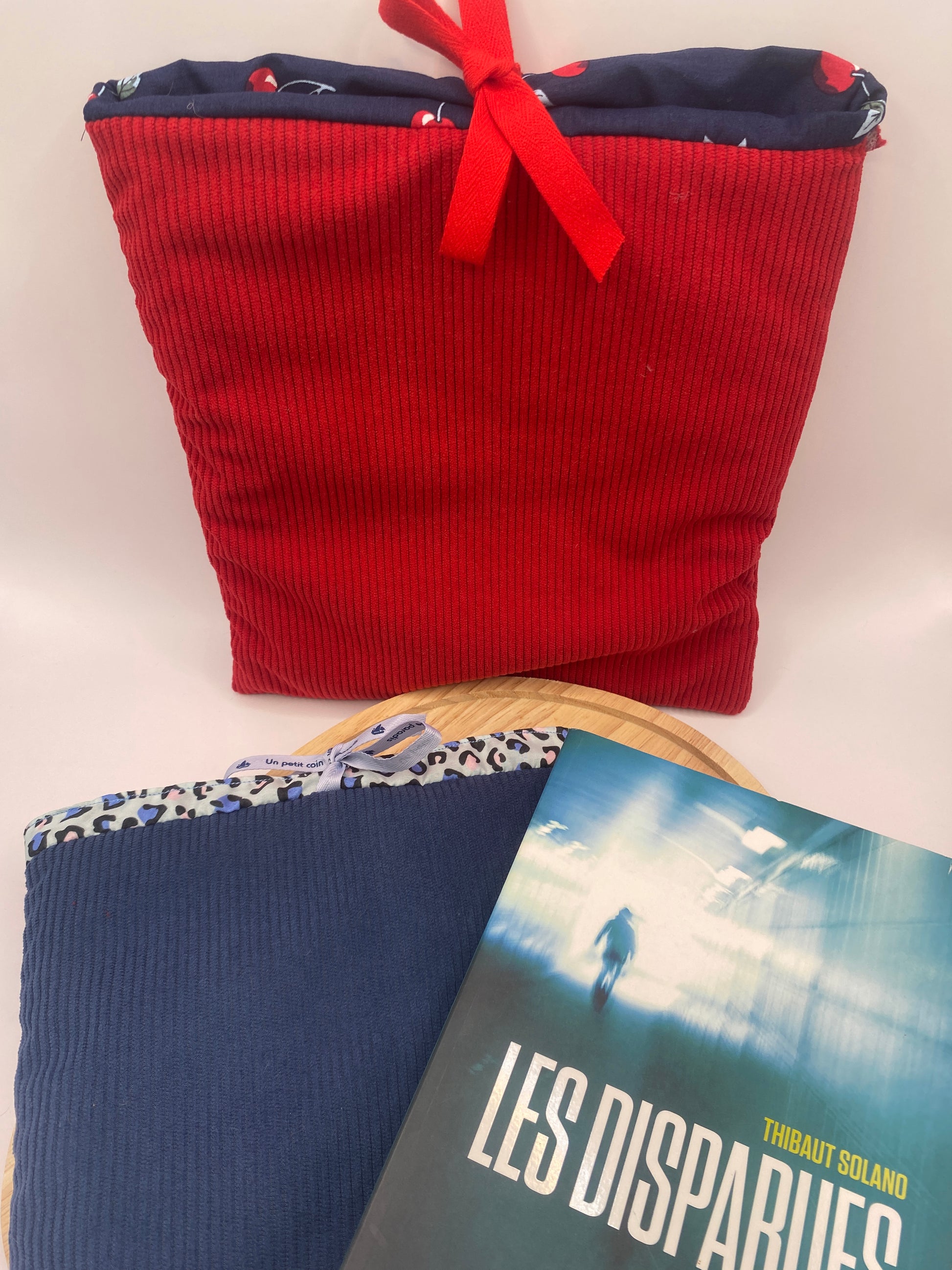 Découvrez nos nouvelles créations exclusives Armelle (velours rouge & motif cerises) et Vanessa (velours bleu & motif léopard) ! Ces housses de livre sont confectionnées à la main dans mon atelier avec des tissus récupérés et upcyclés.