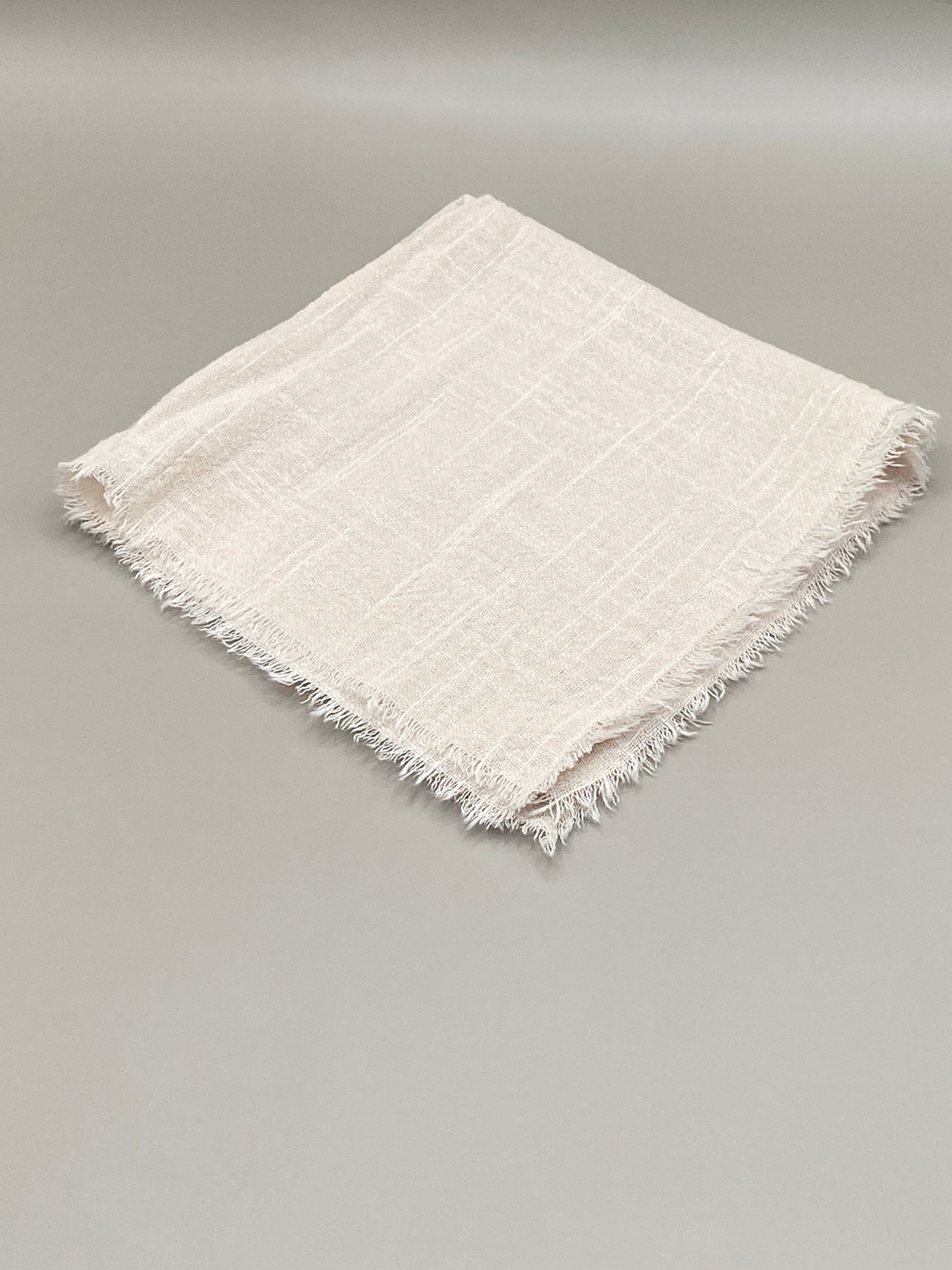- Serviette : coton & lin beige clair â 32Ă32 cm â finition frangĂ©e